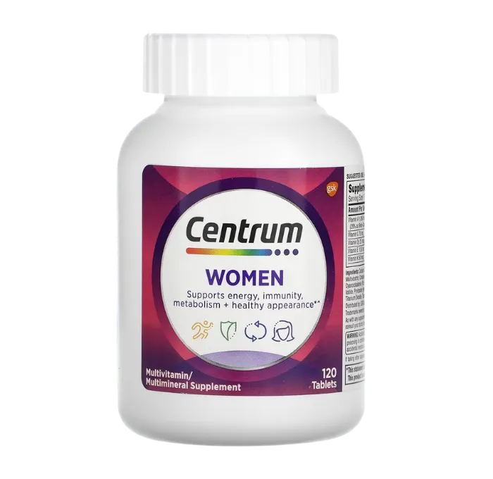 Centrum Multivitamin/Multimineral Supplement for Women is a complete daily formula designed to help women maintain energy, strength, and overall vitality. Packed with key nutrients like B vitamins for energy, vitamins C, D, and zinc for immune support, and calcium for bone health, it provides balanced nutrition for today’s busy lifestyle. It also contains antioxidants and biotin to promote healthy skin, hair, and nails — helping you look and feel your best.